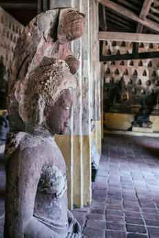 Je visite le Wak Sisaket, plus vieux temple du Laos et surtout le seul épargne par les bombardements. La collection de bouddhas vieux de plusieurs centaines d'années est incroyable!